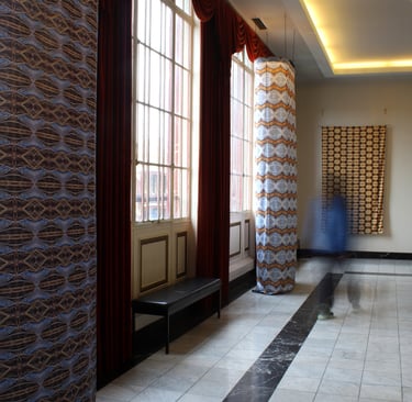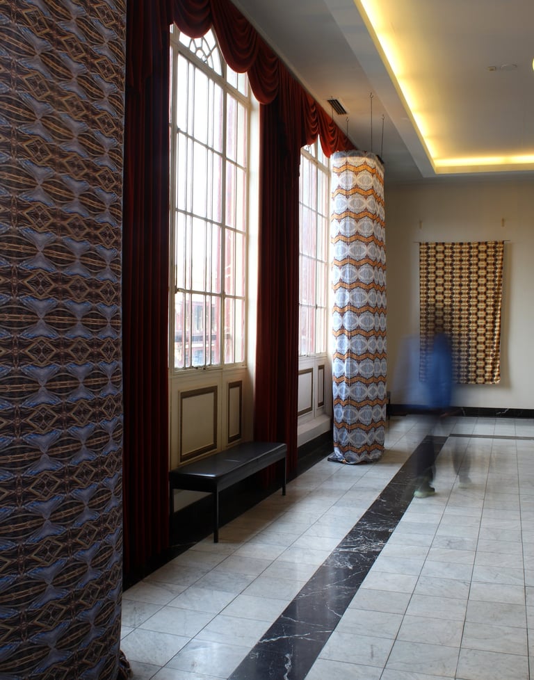 Algorithmic Landscapes is a series of works employing expanded photography, printmaking, and sculptural disciplines. Hartje's practice focuses on contemporary domestic and urban life, finding themselves drawn to urban waste lands, waterways, and sites of dereliction. They began working with space and pattern through materials such as tape, string, projections, and shadow play as methods for interrogating our built environments. Algorithmic Landscapes visualises the constraints and constructs of gender, sexuality, ethnicity, and class in our domestic and urban spaces. Taking images captured during meditative walks of their city, Hartje re-creates these spaces via manual algorithmic methods of manipulation – finding the information, isolating it, perfecting it, formulating it, propagating it, repeating it – a process akin to industrial production, urban regulation, and intelligent algorithms. The resulting infinite patterns Hartje sees as a conceptual mapping of the systems which construct, administer and delegate our physical and virtual environs and ecologies.